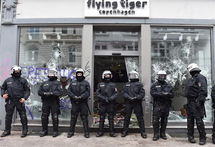 Onderaan filmpje van de rellen in nijmegen, waarin agenten met de lange lat de antifa's uiteenjagen.